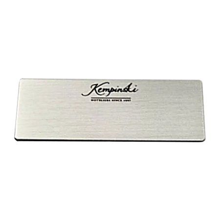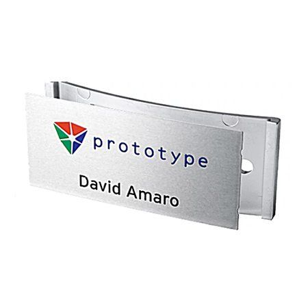 Dieses Namensschild mit seinem leicht konvexen Design, passt perfekt für Branchen mit mittlerem Personalwechsel und der Personalisierung mittels PC und Druck auf A4 Kartonbogen (perforiert) für Namenskarten.